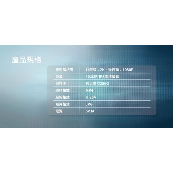 10.88吋 2K超高畫質雙鏡頭後視鏡行車記錄器