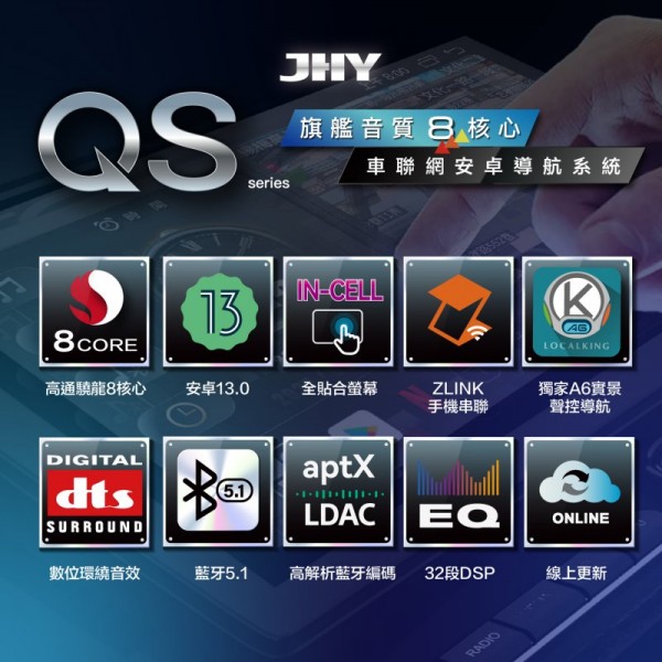• 【JHY】QS60【QS系列旗艦音質8核心,車聯網安卓導航系統】 9/10吋 採用8GB RAM+128GB ROM