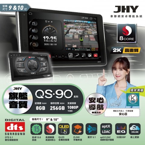 【JHY】QS90【QS系列旗艦音質8核心,車聯網安卓導航系統】 9/10吋 採用8GB RAM+256GB ROM